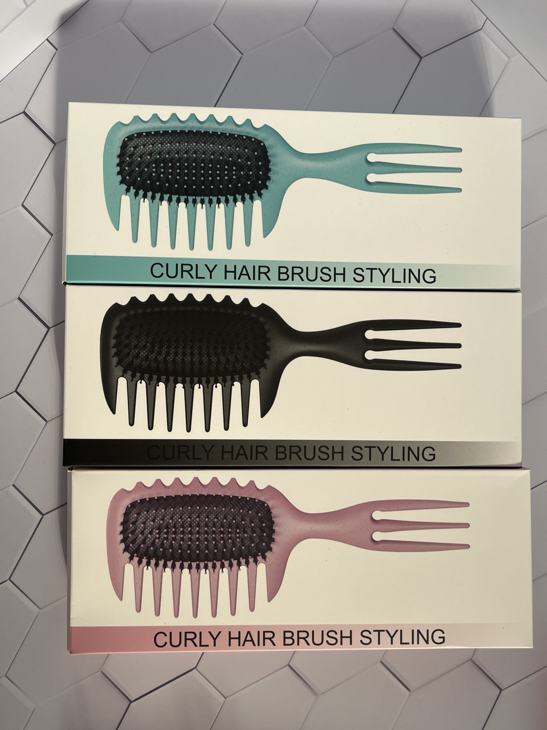 برس ۳ کاره استایل و شانه موی فر (بونس کرل + شانه دندانه درشت + شانه پیک) 3in 1 Curly Hair Styling & Detangling Brush